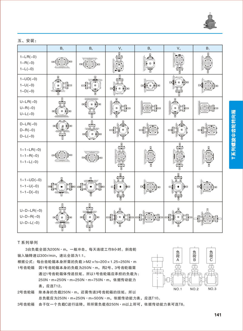 安裝形式 >> T系列螺旋傘齒輪轉向箱-