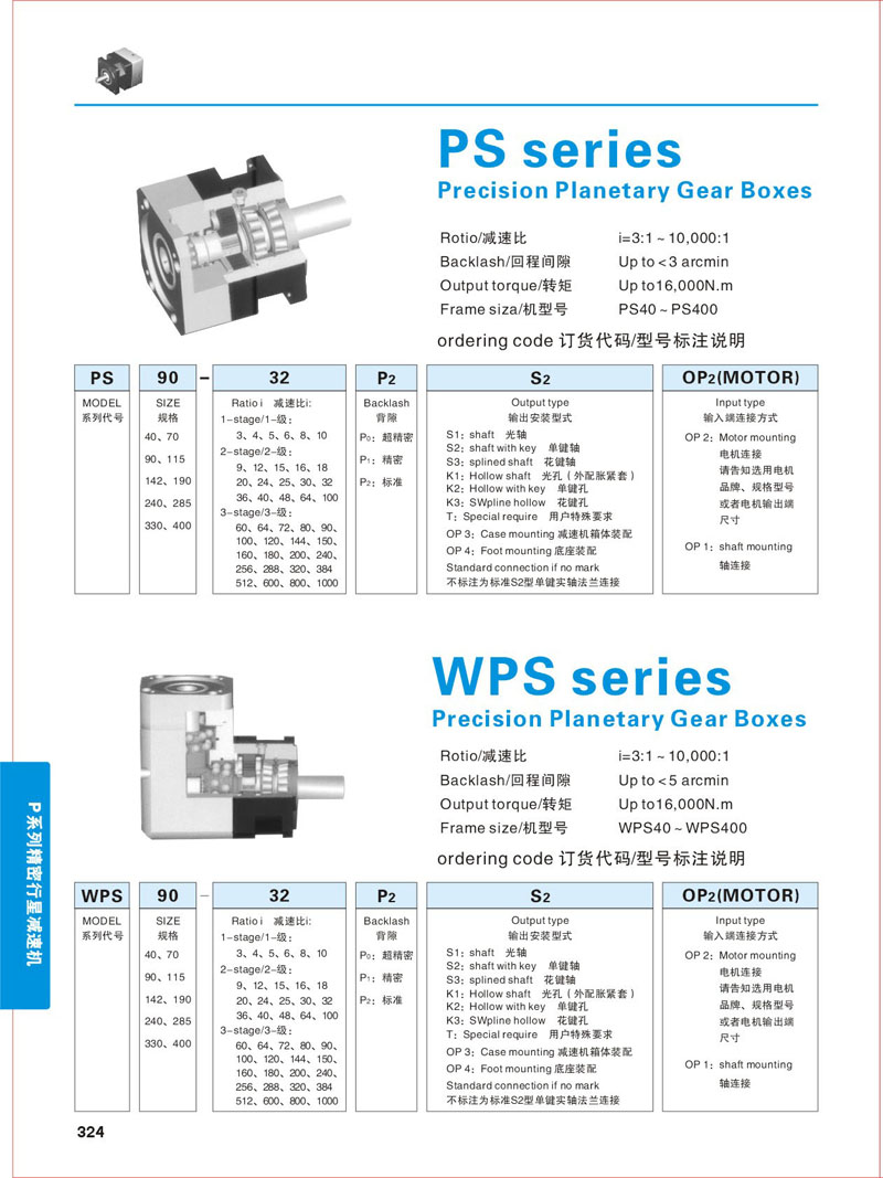 產(chǎn)品參數(shù) >> P系列精密行星減速機-