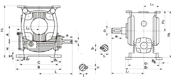WHT一蝸桿可以在蝸輪之下、之上、之側(cè)的通用型圓弧齒圓柱蝸桿減速器;