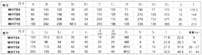 WH系列圓弧齒圓柱蝸桿減速器,符合部頒標準jB2318—79,達到標準化、系列化的要求。適用于冶金、礦山、起重、運輸、化工、建筑等各種機械設備的減速傳動。本系列減速器輸入功率范圍在O.4~l 63Kw之間;輸出扭矩在Il~2600kgf·m之間,輸入軸轉(zhuǎn)數(shù)一般不大于l 500轉(zhuǎn)/分;高速軸可正反兩向運轉(zhuǎn);工作環(huán)境溫度為一40℃~45℃·當工作環(huán)境溫度低于0℃時,起動前潤滑油必須加溫到0℃以上。